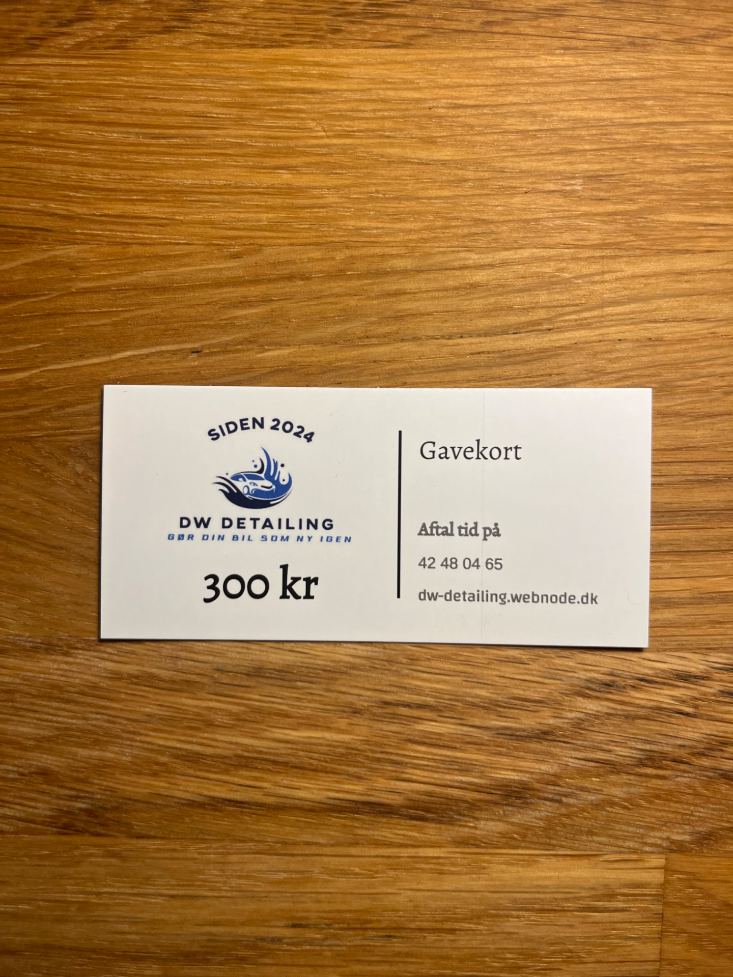 Hos DW-Detailing kan du købe et gavekort på 300 kr. Den perfekte gave til enhver bilejer, der ønsker en flot bil.